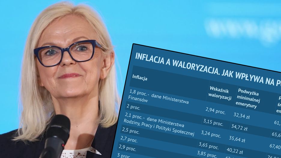 Jeżeli z kolei roczna inflacja zamknie się w okolicach 3 proc., to seniorzy będą mogli liczyć na 45 zł podwyżki - gdy otrzymują minimalne 1100 zł. Przy emeryturze 4 tys. zł waloryzacja dałaby 166 zł każdego miesiąca. W ciągu roku to już 1992 zł więcej na koncie.