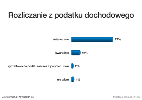 Z kwartalnego rozliczania podatku dochodowego korzysta zaledwie 16 proc. przedsiębiorców - pokazują wyniki raportu _ Księgowość mikro i małych firm w Polsce 2011 _, przygotowanego przez InFakt.pl we współpracy z firmą badawczą 4P research mix.