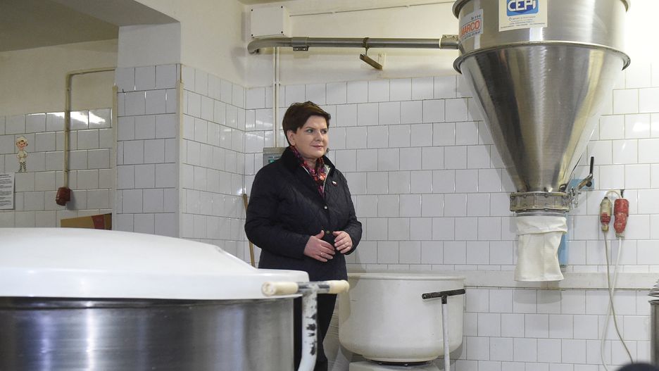 Pierwszym punktem wizyty premier na trasie piątkowych spotkań z okazji 100 dni rządu była rodzinna piekarnia w miejscowości Kroczewo (powiat płoński). Szefowa rządu rozmawiała z właścicielami i pracownikami piekarni m.in. o tym, co zrobić, żeby "polscy przedsiębiorcy mieli dobrą perspektywę prowadzenia swoich firm".