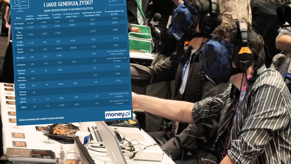 Nie dziwi więc rosnąca wartość spółek, których zyski rosną. Pytanie tylko, czy nie są już przewartościowane? Numer jeden na polskim rynku, czyli CD Projekt, ma biznes wyceniany na ponad 31 mld zł. Po trzech kwartałach wypracował zyski na poziomie 170 mln zł.