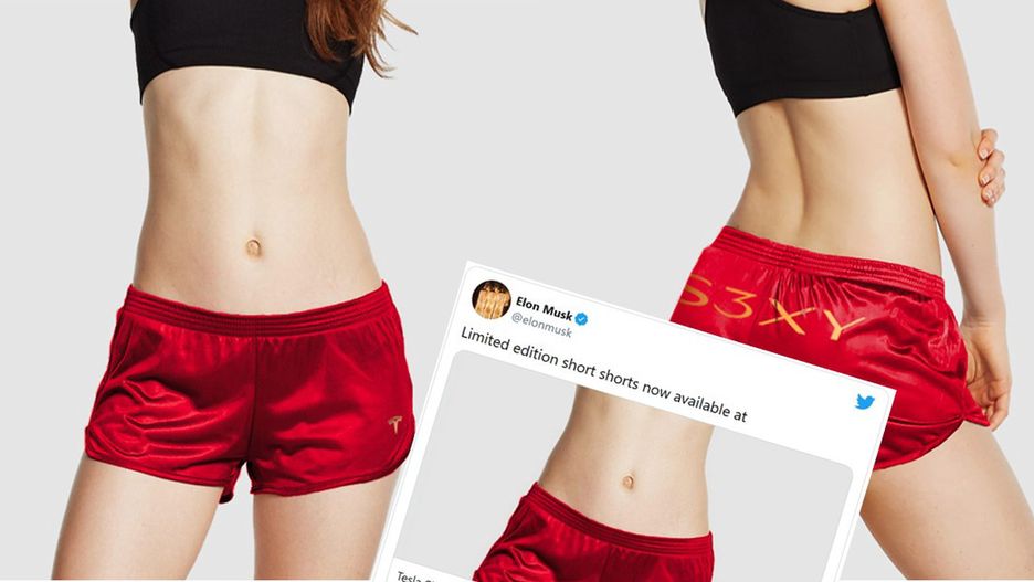 Teraz Musk do sprzedaży wprowadził czerwone satynowe szorty ze złotym logiem firmy i napisem S3XY. ”Biegaj jak wiatr lub baw się jak Liberace dzięki naszemu czerwonemu satynowemu i złotemu wykończeniu (…) Ciesz się wyjątkowym komfortem z dzwonka zamykającego” – zachęca do zakupu szortów Tesla na swojej stronie.