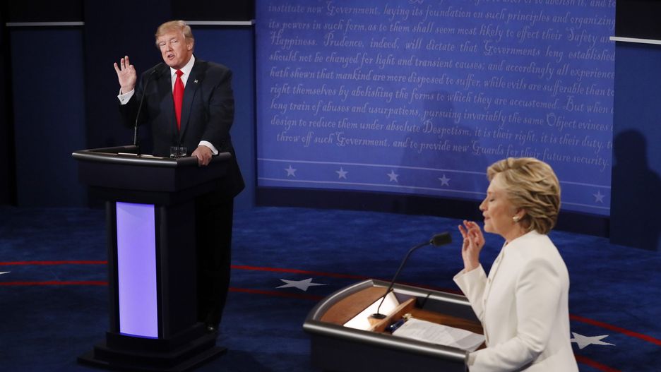 Donald Trump podczas debaty przekonywał o konieczności kontroli granic, renegocjowania porozumień handlowych, współpracy z Rosją i rozbiciu korupcyjnego układu waszyngtońskich elit i wielkiego biznesu. Obiecał również, że nominuje do Sądu Najwyższego konserwatywnych sędziów, którzy zmienią decyzję z 1973 roku o legalizacji aborcji.