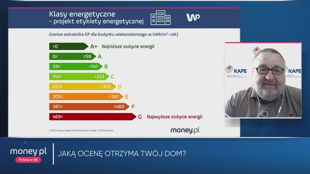 Krajowa Agencja Poszanowania Energii (KAPE) zaprezentowała propozycję podziału budynków mieszkalnych na klasy energetyczne. Unijna dyrektywa EPBD wprowadza podział budynków mieszkalnych na klasy w zależności od zużycia energii - od nieobowiązkowej A+, przez A do najniższej G, w której ma się znaleźć 15 proc. budynków z najgorszą charakterystyką energetyczną. Co się zmieni i jakie to będzie miało konsekwencje? O tym mówił w programie "Money.pl Polska w UE" dr hab. inż. Arkadiusz Węglarz z Wydziału Inżynierii Lądowej Politechniki Warszawskiej i Krajowej Agencji Poszanowania Energii.