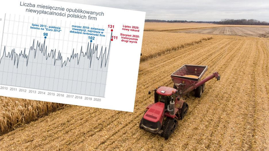 Liczba niewypłacalności polskich firm osiągnęła po ośmiu miesiącach 2020 roku rekordowy poziom – 722 przedsiębiorstw. To o 10 proc. więcej niż przed rokiem i najwięcej w tej dekadzie, podała firma Euler Hermes. Mimo popytu na żywność, zauważalnym problemem staje się niewypłacalność jej producentów.