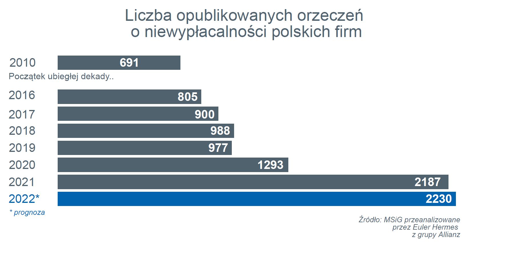To, plus szeroko zakrojone programy pomocowe, pozwoliło oczekiwać na stosunkowo spokojny koniec 2021 roku. Potem jednak przyszedł listopad i liczba niewypłacalności wzrosła do rekordowego poziomu.