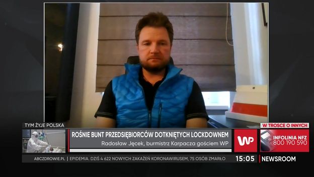 - Rozumiem protesty przedsiębiorców, wolelibyśmy działać na podstawie prawa i w granicach prawa. (...) Jesteśmy pozostawieni sami sobie. Rozumiem tę frustrację, tę determinację. Charakterystyka gmin górskich jest szczególna, przedsiębiorcy muszą zarobić 70 proc. swoich przychodów w okresie świątecznym i ferii, nie mają takiej możliwości - mówił w programie "Newsroom" Radosław Jęcek, burmistrz Karpacza. W jego ocenie pomoc jest "iluzoryczna". Jak mówił, nastroje w Karpaczu są nie najlepsze. - Obyśmy nie usłyszeli, że po 17 stycznia będzie utrzymanie obostrzeń. Pozwólcie nam pracować, wiemy, jak to zrobić bezpiecznie i profesjonalnie - powiedział.
