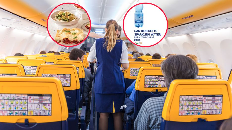 Kanapka panini w cenniku pokładowym Ryanaira kosztuje około 5,5 euro, a gorący odgrzewany posiłek (np. lasagne) to wydatek 6,5 euro. Słodkie przekąski - batony Twix, Kinder Bueno czy Snickers - kosztują 2,25 euro, czyli ponad 11 zł. Paczka żelków albo czekoladowych cukierków, to koszt od 3 do 4,5 euro. Puszka Coca-Coli kosztuje 3 euro, tyle samo co półlitrowa butelka wody. W ofercie są też zestawy "meal deal". Napój, wybrana przekąska i kanapka kosztują 9,99 euro.