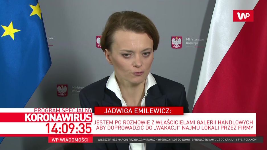 - Na razie uchyliliśmy drzwi do sklepów wielkopowierzchniowych, by można było je zatowarować w niedzielę - mówi minister rozwoju Jadwiga Emilewicz. Jak dodała, zakaz handlu pozostaje utrzymany, ale można sklep zaopatrzyć w niedzielę wieczorem, przed północą. - Na dyskusję na temat ewentualnego zniesienia zakazu mamy jeszcze czas - powiedziała Emilewicz. Zwróciła uwagę, że wiele sklepów z żywnością w ostatnich tygodniach zwiększyło swoje obroty o nawet 100 proc.