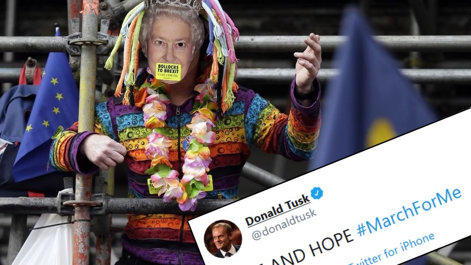 "Pride & Hope", czyli "Duma i nadzieja" - napisał na twitterze szef Rady Europejskiej. W ten sposób odniósł się do gigantycznego marszu, który w sobotę zorganizowali zwolennicy pozostania Wielkiej Brytanii w Unii Europejskiej.