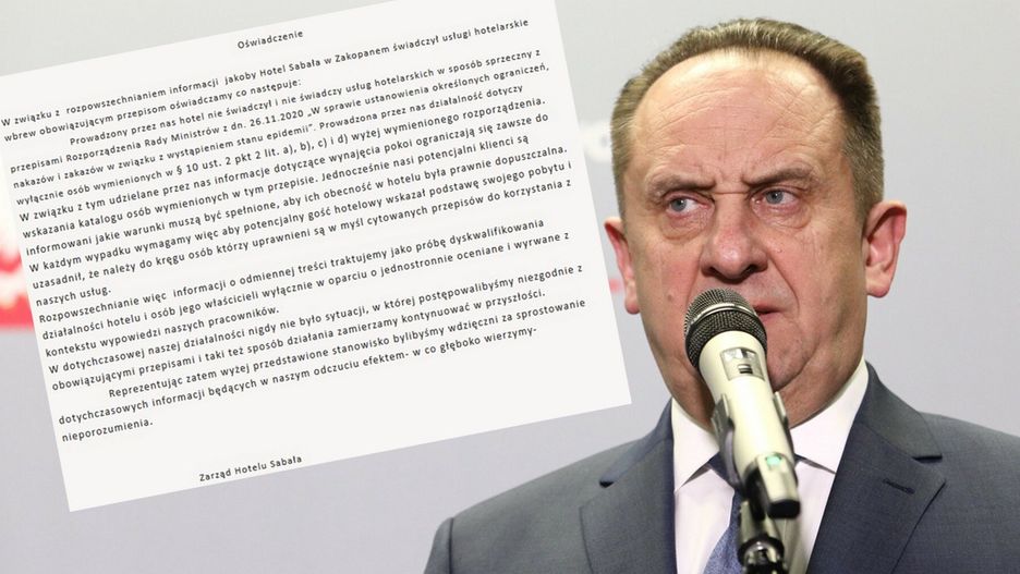 Hotel Sabała w Zakopanem, którego właścicielem jest wiceminister rozwoju Andrzej Gut-Mostowy, odpowiedział na zarzuty, że przyjmuje gości omijając zarządzenie premiera. W oświadczeniu stanowczo zaprzecza, aby łamał obowiązujące przepisy.