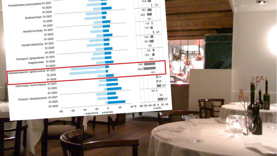 Prawie 60 proc. firm z szeroko rozumianej branży hotelarskiej i gastronomii zadeklarowało w styczniu pogorszenie ich sytuacji w porównaniu z poprzednim miesiącem. W żadnej innej branży badanej przez GUS nie ma tak złych wyników.