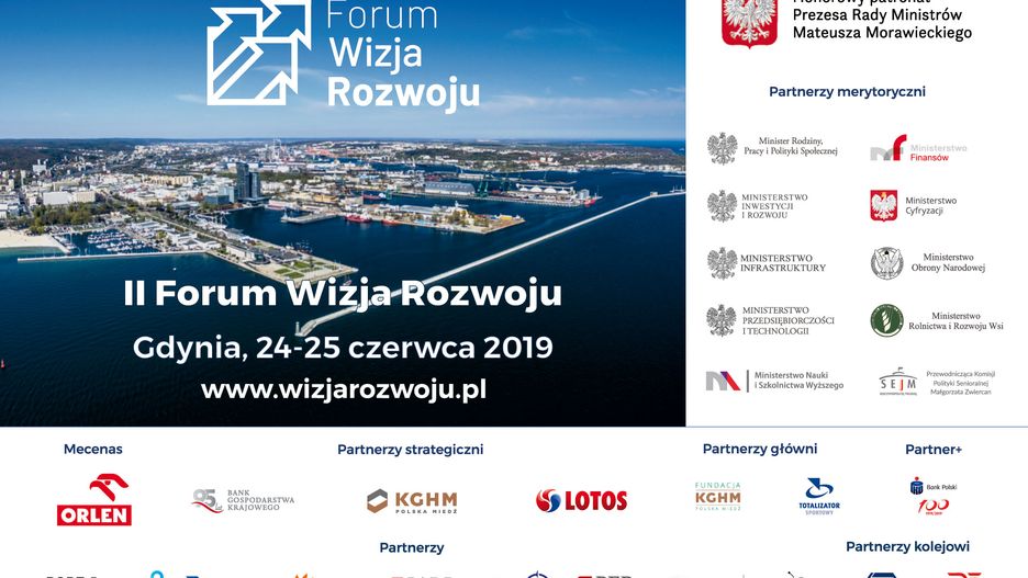 II Forum Wizja Rozwoju jest największym wydarzeniem gospodarczym w północnej Polsce. Odbędzie się w gdyńskiej Akademii Marynarki Wojennej w dniach 24-25 czerwca 2019 r. W harmonogramie znalazło się sto debat upamiętniających stulecie odzyskania niepodległości.