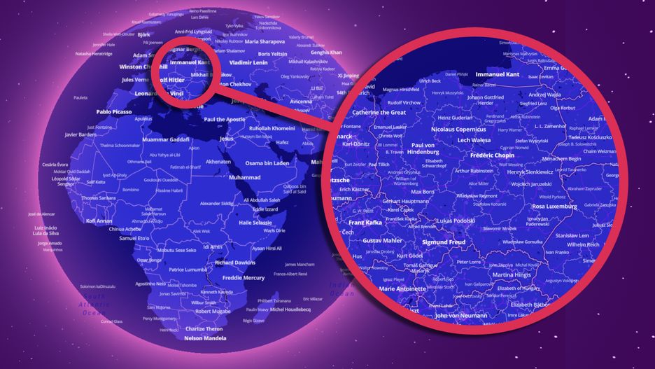 Specjalną mapę stworzył geograf z Helsinek Topi Tjukanov przy współpracy z Mapbox. Jak sam przyznaje — jest entuzjastą danych geoprzestrzennych i szukania innowacyjnych sposobów ich wizualizacji. Dlatego korzystając ze specjalnych danych, zaprojektował mapę pokazującą miejsce urodzenia wybitnych osób z dziedziny kultury, nauki, sportu oraz "przywództwa".