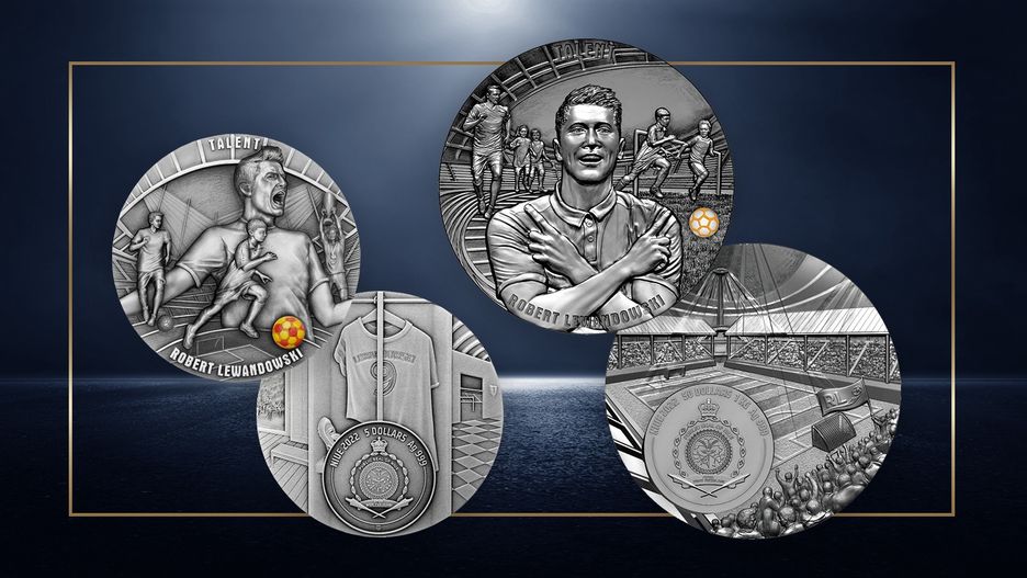 Do przedsprzedaży trafiły już monety "Talent" wybite z najwyższej próby srebra 999: dwuuncjowa 5-dolarowa oraz kilogramowa 50-dolarowa. Na rewersie pierwszej z nich są cztery wizerunki Roberta Lewandowskiego oraz trójwymiarowa wstawka imitująca piłkę. Z kolei na awersie znajduje się koszulka piłkarza z nazwiskiem i numerem 9. W przedsprzedaży moneta kosztuje obecnie 1799 zł, a jej nakład wynosi 3000 sztuk.