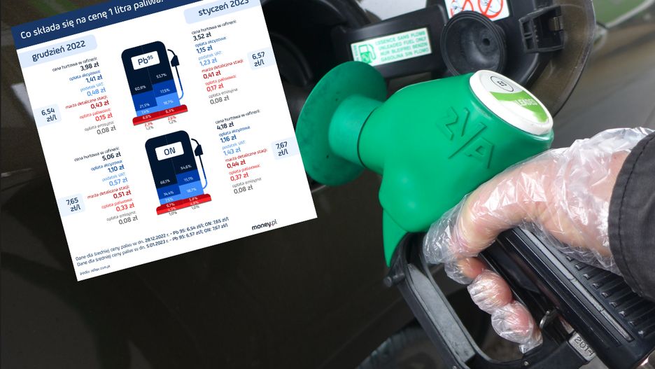W tym samym czasie prawie trzykrotnie wzrósł udział podatku VAT w cenie paliwa - z 7,4 proc. do 18,7 proc. Na porównywalnym poziomie utrzymał się "wkład", jaki do ceny litra paliwa wnoszą akcyza, opłata paliwowa, opłata emisyjna. Nieznacznie spadły marże - z 6,8 proc. do 6,3 proc. dla benzyny Pb95 oraz z 6,7 proc. do 5,8 proc. dla oleju napędowego ON.