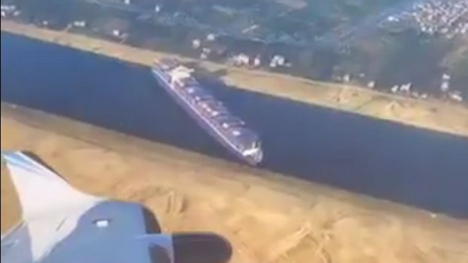 Kontenerowiec obsługiwany przez tajwańską firmę Evergreen Marine Corp., zaklinował się na drodze wodnej 23 marca, powodując znaczne zakłócenia w ruchu. W sumie zablokował ponad 400 startów. Odblokowanie trwało 6 dni.