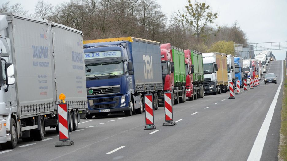 Wydłużają się kolejki na granicy z Białorusią. Kierowcy muszą stać nawet dobę. Na drogach przed przejściami utworzone zostały w sobotę po południu specjalne strefy buforowe dzielące kolejki samochodów ciężarowych oczekujących na wyjazd z Polski.