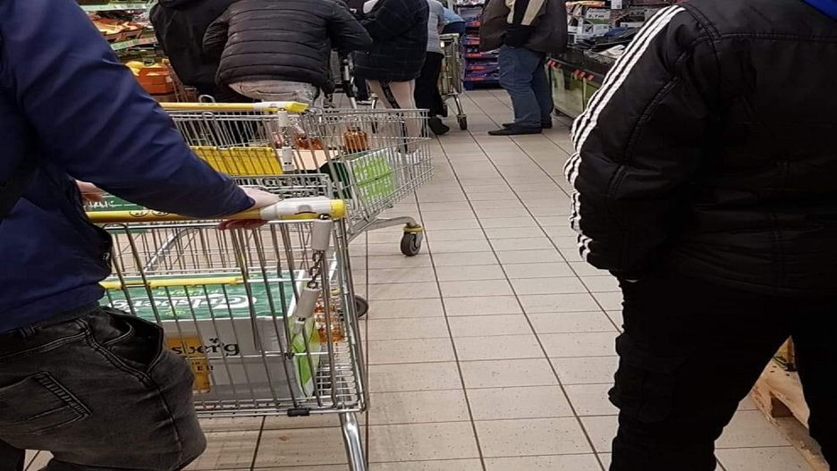 Na zamieszczonym przez niego na Twitterze zdjęciu widać mały tłum w kolejce do kasy. Tym, co może zaskakiwać jest jednak godzina zakupów i koszyki sklepowe wypełnione różnymi rodzajami butelkowanego piwa.