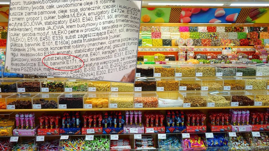 W Polsce dwutlenek tytanu znajdziemy m.in. w gotowych ciastach, lizakach, gumach do żucia, lodach czy cukierkach. Co prawda w ciągu ostatnich lat, ilość produktów z tym składnikiem zmniejszyła się znacząco, ale jednak cały czas da się dostrzec ten barwnik na różnych etykietach.