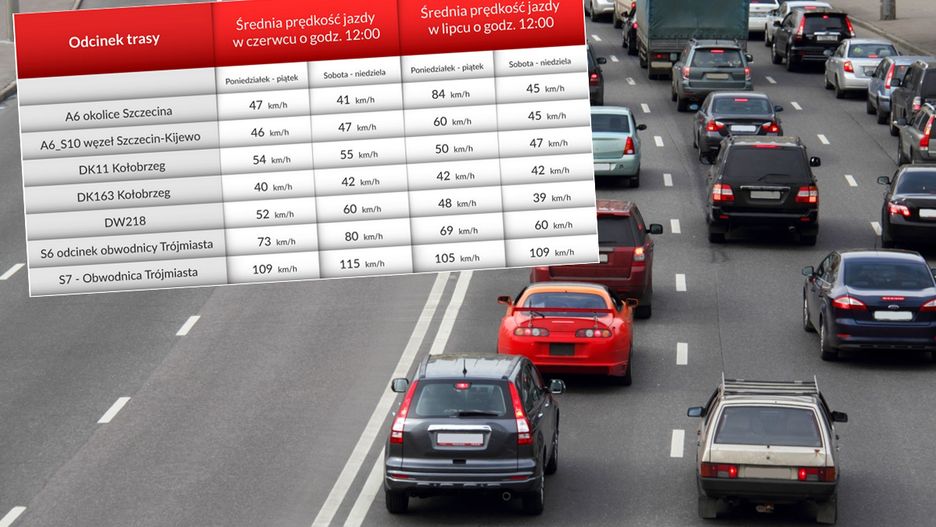 Jest kilka tras, które w wakacje są mocno oblegane. Np. na drodze A6 w okolicach Szczecina w sobotę i niedzielę w południe jedzie się ze średnią prędkością około 45 km/h, a o tej samej porze w dni robocze można jechać prawie dwa razy szybciej - wynika z danych aplikacji Yanosik.
