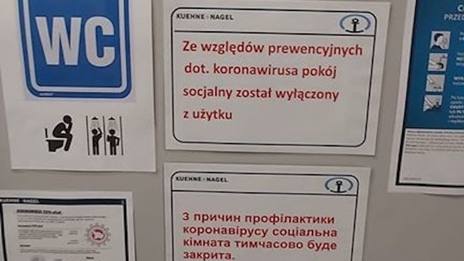 "Na ID Logistic Będzin 'cieciówka' udostępniła umywalkę do mycia rąk, ale kibel już zamknięty dla kierowców... Pomieszczenia, gdzie kiedyś był prysznic/toaleta dla kierowców, przerobili na pokój socjalny dla ochrony."