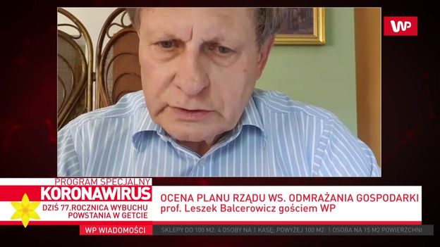 - Podczas odmrażania gospodarki potrzebne jest zwiększenie tekstów i pojmują to wszyscy rozumni politycy – mówi w programie specjalnym WP prof. Leszek Balcerowicz. W jego ocenie, w Polsce mamy za to mnóstwo „mętnych komunikatów” od ministra zdrowia, a na dodatek „pojawiają się pytania o fachowość rządzących i to czy można rządowi wierzyć”. 340 nowych przypadków zakażenia koronawirusem potwierdzono w niedzielę rano. To statystycznie najgorszy poranek w Polsce od początku pandemii. Potwierdzono już więcej zakażeń niż przez cały wielkanocny poniedziałek.