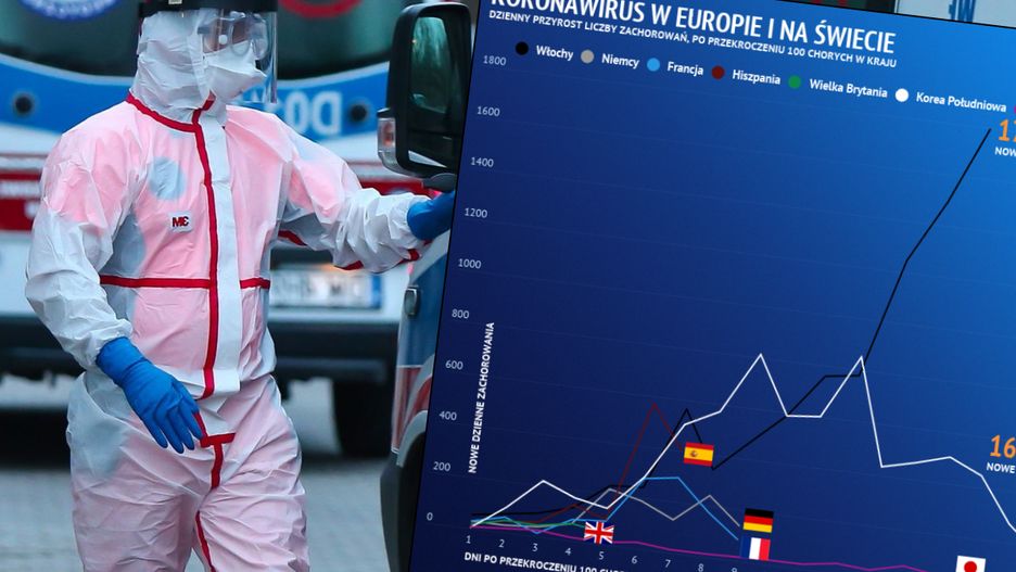 Blisko 1,8 tys. nowych przypadków zachorowań na koronawirusa - to bilans ostatnich 24 godzin we Włoszech. Chorych nie tylko przybywa, nowych przypadków jest coraz więcej. Zdecydowanie lepiej radzą sobie z kolei Niemcy, Francuzi, Hiszpanie, którzy odwracają negatywny trend.