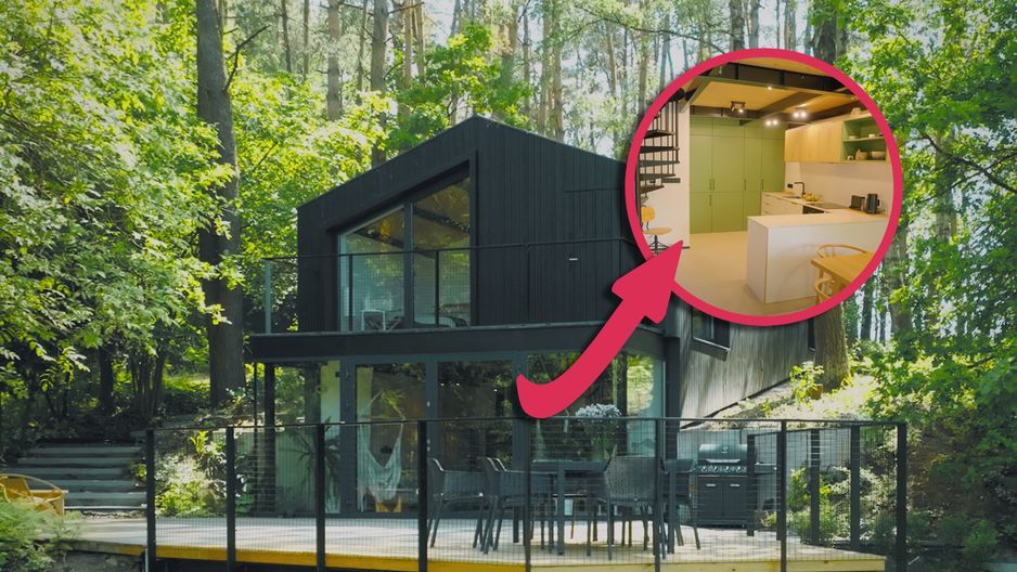 Ten dom kryje kilka niespodzianek. Pierwsza to wiek: czarna bryła do połowy zanurzona w skarpie wygląda bardzo nowocześnie. Okazuje się jednak, że kręgosłupem budynku jest domek letniskowy z lat 60. XX wieku. - Gdy pierwszy raz tu przyjechaliśmy, zobaczyliśmy stary, zarośnięty domek. Brudny, nieustawny. Wszystko praktycznie nadawało się do wymiany: dach przeciekał, w środku śmierdziało stęchlizną - opowiada Maciej Cudny. Właścicieli urzekła jednak okolica i usadowienie budynku. - Znajduje się na zboczu pięknej górki, otoczony jest lasem. Wiedzieliśmy, że to jest diament, który możemy oszlifować - dodaje pan Maciej. Z zewnątrz, na pierwszy rzut oka, dom wygląda dość surowo. Wnętrze zaskakuje jednak klimatem. Dzięki oknom dachowym i sporym przeszkleniom, przez które wpada naturalne światło, białym ścianom, sporej ilości naturalnych materiałów i dodatkom w ciepłych kolorach jest jasno i przytulnie. Na górnej kondygnacji są sypialnie, na dole - część dzienna: salon z wyjściem na ogromny taras, jadalnia i niemała kuchnia, w której znajdują się też "tajemnicze drzwi". To ukryte w zabudowie przejście do spiżarki. Dom, którego całkowita powierzchnia wynosi ok. 100 mkw., wraz z działką kosztował w 2018 r. 180 tys. zł. Koszt renowacji i wyposażenia wyniósł 300 tys. zł. Choć właściciele liczyli się z ogromem pracy związanym z przebudową, zaskoczyła ich jedna rzecz. Okazało się, że domek ma sypiący się, drewniany strop. Trzeba go było w całości wymienić na stalowy. By dom nadawał się do mieszkania przez cały rok, docieplono ściany i kryty wcześniej papą dach, a w całym domu zastosowano ogrzewanie podłogowe. O szczegółach projektu opowiada w nowym odcinku programu "Pomysł na dom" Kuba Jankowski.
