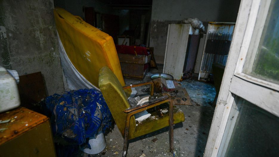 Zrujnowane budynki, zniszczone meble i sprzęt