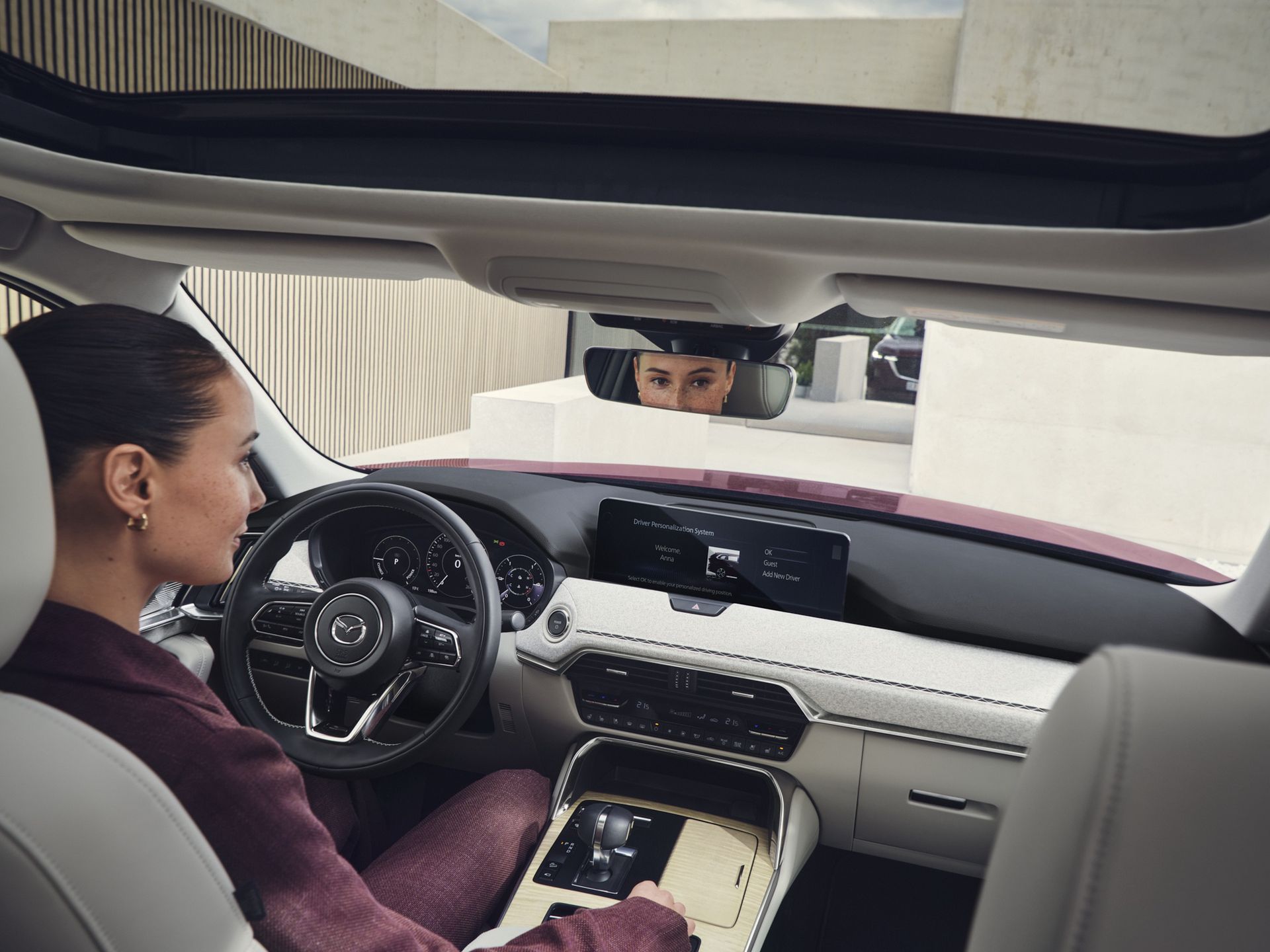 Zarówno podczas podróży służbowej, jak i rodzinnego wyjazdu na wakacje, Mazda CX-80 zapewnia niezrównaną wygodę. Funkcjonalny bagażnik pozwala na transport dużych przedmiotów, a liczne schowki ułatwiają organizację codziennych drobiazgów. Ergonomiczne fotele, wykonane z najwyższej jakości materiałów, są niezwykle wygodne. A trzystrefowa klimatyzacja umożliwia ustawienie temperatury w drugim i trzecim rzędzie siedzeń, zapewniając wygodę wszystkim pasażerom.