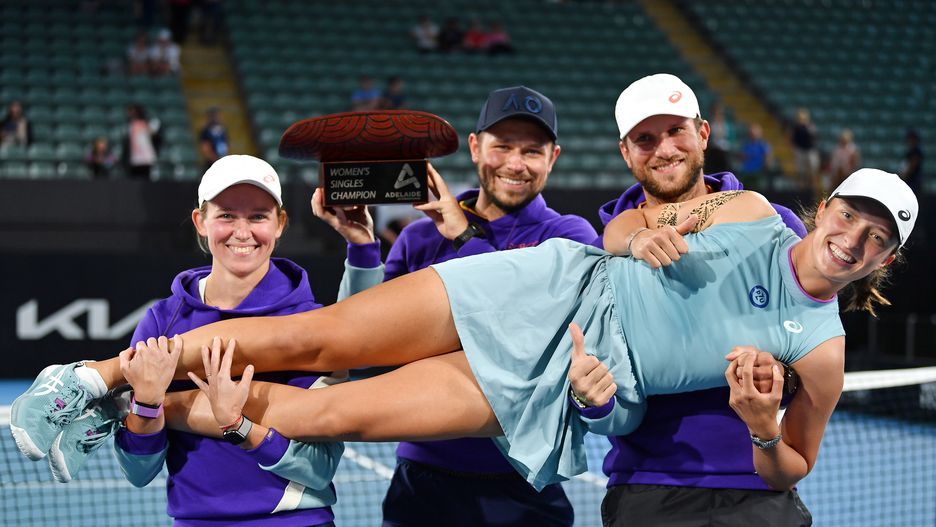 Każdy wygrany turniej to powtarzające się zdjęcie - trener, psycholożka i fizjoterapeuta biorą Igę Świątek na ręce, a uśmiech rozpromienia ich twarze. To "Team Świątek", czyli Piotr Sierzputowski, Daria Abramowicz i Maciej Ryszczuk. Zbudowali silne więzi, a to pozwala odnosić sukcesy.