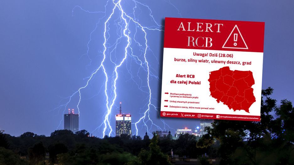 Rządowe Centrum Bezpieczeństwa wysłało do mieszkańców całego kraju SMS o treści: "Uwaga! Dziś (28.06) prognozowane burze z silnym wiatrem, ulewnym deszczem i lokalnie gradem. Unikaj otwartych przestrzeni, zabezpiecz dobytek.".