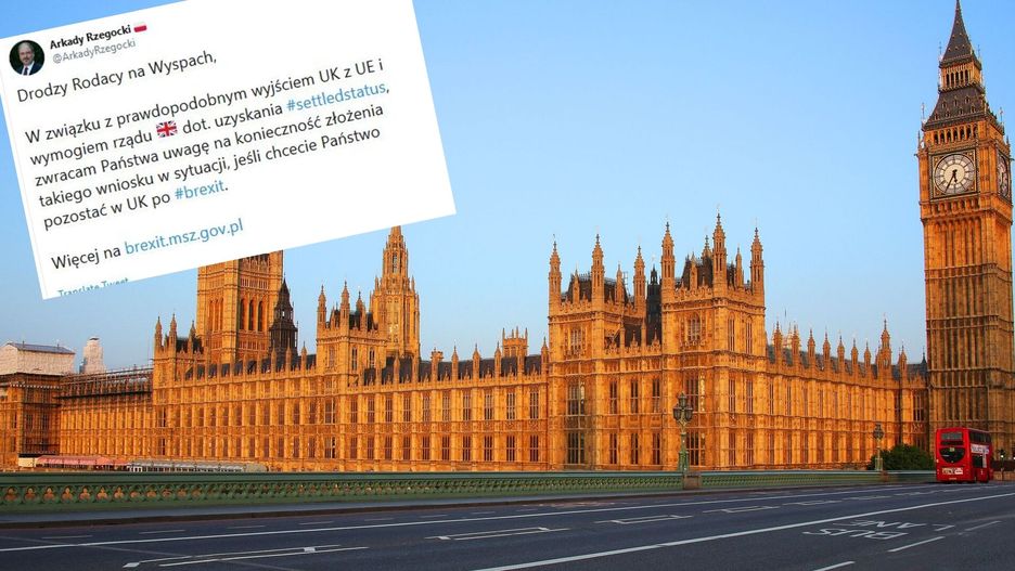 "Zwracam Państwa uwagę na konieczność złożenia takiego wniosku w sytuacji, jeśli chcecie Państwo pozostać w UK po brexicie" - zaznacza ambasador Rzegocki.