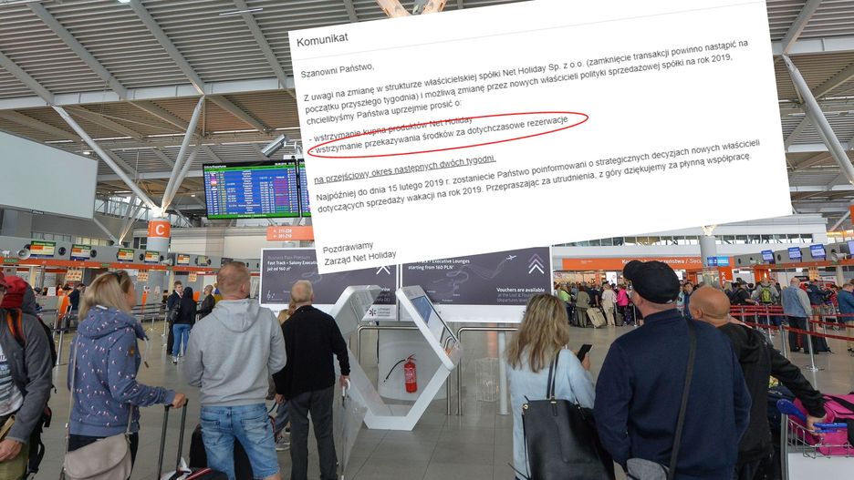 "Z uwagi na zmianę w strukturze właścicielskiej spółki Net Holiday Sp. z o.o. (zamknięcie transakcji powinno nastąpić na początku przyszłego tygodnia) i możliwą zmianę przez nowych właścicieli polityki sprzedażowej spółki na rok 2019, chcielibyśmy Państwa uprzejmie prosić o wstrzymanie kupna produktów Net Holiday" - taki komunikat pojawia się po wejściu na stronę biura.