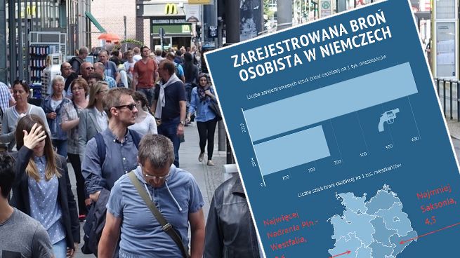 Berlińczyk dodaje jednak, że w jego kraju jest ciągle stosunkowo mało broni - chociażby w porównaniu do USA. I faktycznie, według badania pracowni Small Arms Survey z 2017 roku w Stanach Zjednoczonych na 100 mieszkańców przypada ponad 120 sztuk broni każdego typu, nie tylko tej osobistej. W Niemczech natomiast na taką samą liczbę mieszkańców przypada niecałe 20 sztuk. Jeszcze mniej broni jest w Polsce - jedynie 2,5 sztuki na 100 mieszkańców.