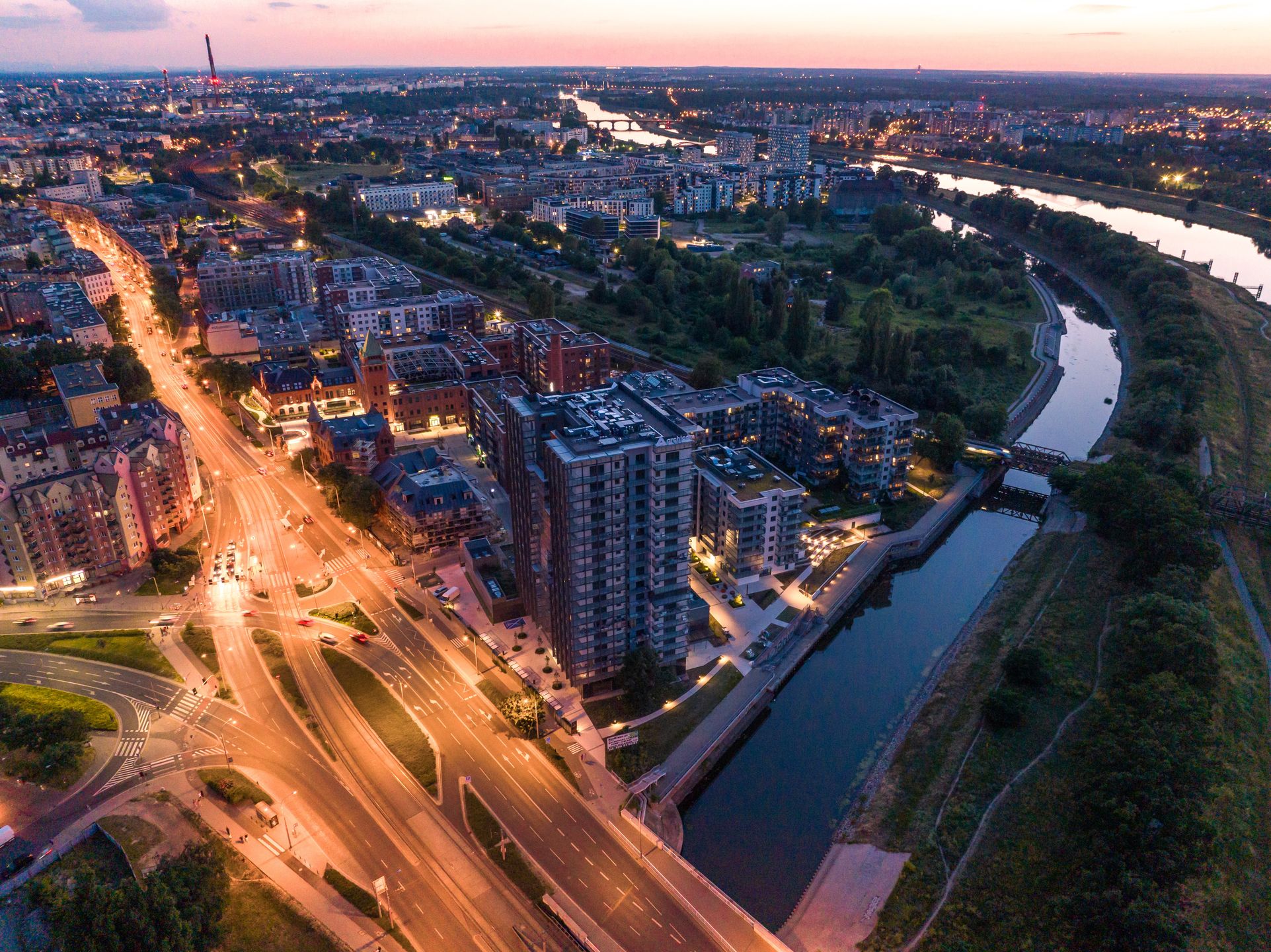 Jednym z głównych celów, jakie postawił sobie Archicom, było zaprojektowanie przestrzeni przyjaznej pieszym i rowerzystom. Prawie 40 proc. powierzchni działki stanowią tereny zielone, w tym roślinność wertykalna i zielone dachy, a aż 80 proc. miejsc parkingowych zostało umieszczonych w podziemnych garażach. Powstały trzy główne place otoczone zielenią i urokliwymi uliczkami. Co więcej, stworzono sieć ścieżek pieszo-rowerowych, które łączą inwestycję z historycznym układem komunikacyjnym Wrocławia oraz nabrzeżem Odry.