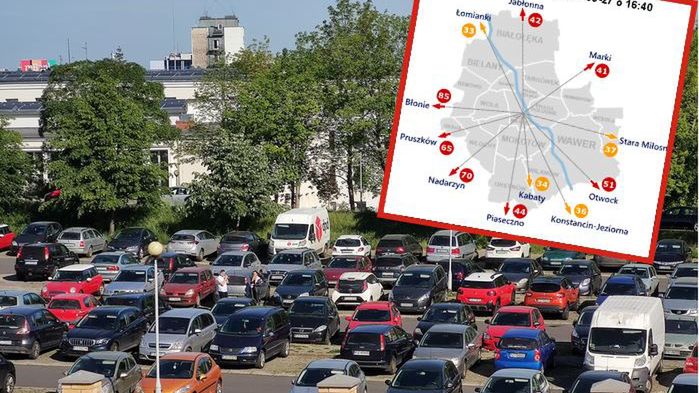 Jak wynika z danych serwisu AutoMapa, w środę 27 maja powrót z centrum stolicy do podwarszawskich Błoni po południu trwał aż 85 minut. Ponad godzinę jechało się natomiast do Pruszkowa. Nieco luźniej było w Krakowie, choć tam również na większości wyjazdówek z miasta pojawiły się korki.