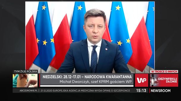 Rząd wprowadza ograniczanie w przemieszczaniu się od godz. 19 dnia 31 grudnia do godz. 6 dnia 1 stycznia. - W całym kraju będzie obowiązywał zakaz przemieszczania się. Będą wyjątki, takie jak niezbędne czynności służbowe oraz inne, które będą wskazane w rozporządzeniu - tłumaczył w programie "Newsroom WP" szef Kancelarii Premiera Michał Dworczyk. Wyjątki mają dotyczyć więc m.in. policjantów, strażników miejskich, czy kierowców. - To będzie weryfikowane przez służby. Osoby, które nie będą przestrzegały tych przepisów, muszą liczyć się z mandatami. Policjanci, jak co dnia, będą patrolować polskie ulice. Jednak liczymy na samodyscyplinę i odpowiedzialność Polaków. Jeśli będą chcieli gremialnie zlekceważyć ten zakaz, to będzie problem, ale wierzę, że wykażą się odpowiedzialnością - dodał.
