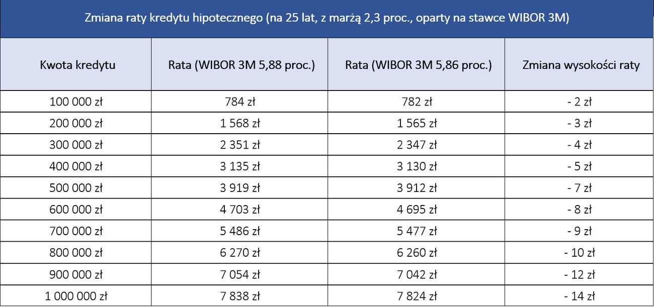 Dla kredytobiorców oznacza to, że w zależności od kwoty kredytu, miesięczna rata zmniejszy się zaledwie od 2 zł do 14 zł.
