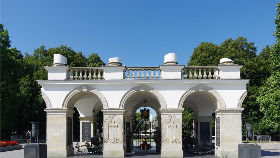 Pałac Saski zajmował przed wojną centralną część zachodniej pierzei pl. Piłsudskiego. Po powstaniu warszawskim Niemcy wysadzili ją w powietrze. Z całej zabudowy pozostał tylko fragment arkad Pałacu Saskiego z Grobem Nieznanego Żołnierza.
