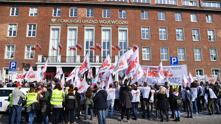 "Dość dyskryminowania pracowników". Pod takim hasłem pod urzędami wojewódzkimi w całym kraju pikietowali związkowcy z NSZZ "Solidarność".