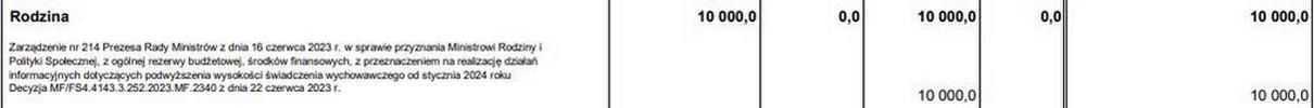 Jak informowało OKO Press, wskazując na spis wydatków z rezerwy budżetowej, premier Mateusz Morawiecki jeszcze w połowie czerwca zdecydował o przekazaniu resortowi rodziny 10 mln złotych na "realizację działań informacyjnych dotyczących podwyższenia wysokości świadczenia wychowawczego od stycznia 2024 roku".