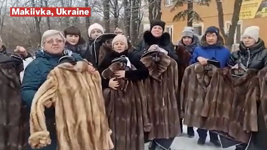 Wdowy zostały sfilmowane w okupowanej przez rosyjskie wojsko Makiejewce na wschodzie Ukrainy. Klip udostępnił kanał CHTD Telegram, informując, że "wdowy otrzymały 21 futer jako rekompensatę za żywiciela rodziny", który stracił życie w Donbasie po 2014 r.