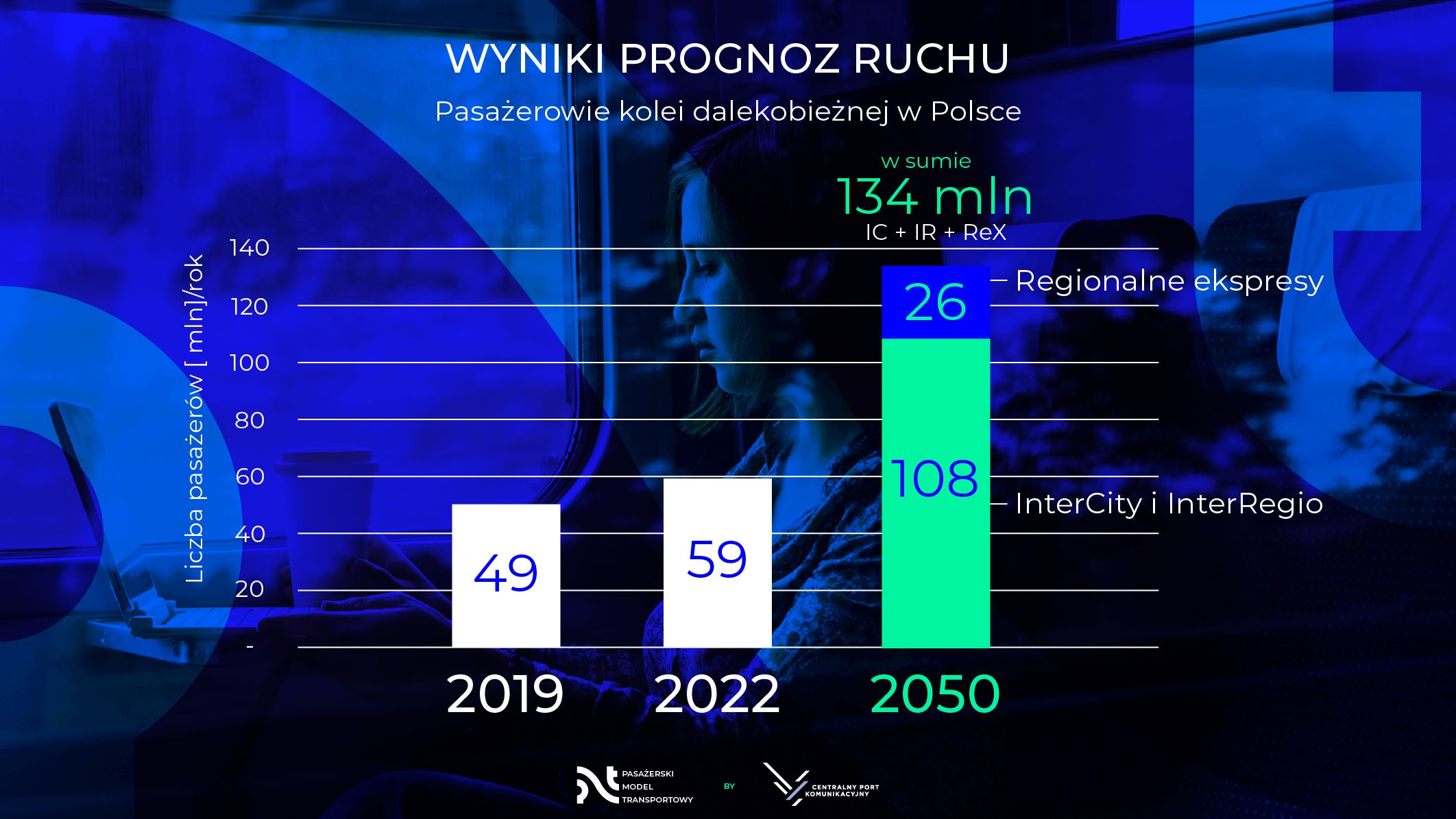 Centralny Port Komunikacyjny to szansa na rozwój nie tylko dla lotnictwa, ale również dla transportu drogowego oraz kolejowego. Czwarta odsłona Pasażerskiego Modelu Transportowego zakłada, że w 2050 r. liczba pasażerów kolei dalekobieżnej w Polsce sięgnie 134 mln. W tej liczbie zawiera się 108 mln w pociągach kategorii InterCity i InterRegio oraz 26 mln osób przewiezionych przez regionalne ekspresy.