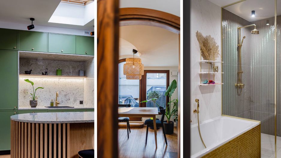 Dwa różne poziomy podłogi i skosy, bardzo wysokie, a gdzie indziej bardzo niskie sufity, dach szedowy i nieregularny układ wnętrza w kształcie litery L. Projekt mieszkania, które powstało z połączenia trzech osobnych strychów na Saskiej Kępie w Warszawie, był sporym wyzwaniem dla architekta. Aleksandra Niedużak, która podjęła się tego zadania, podpowiada, na co należy zwrócić uwagę w tego typu projektach. Na około 100 m kw. udało się wydzielić kuchnię z salonem, dwie sypialnie, garderobę, łazienkę i niewielki gabinet. Wnętrze urządzono w nowoczesnym stylu. Jest bardzo przytulne dzięki zachowaniu oryginalnych drewnianych podłóg, widocznej więźby dachowej, belek i podsufitki. Poza drewnem dominują kolory złoty i zielony. Remont mieszkania zakończył się na początku 2021 r. i kosztował ok. 500 tys. zł. O szczegółach i detalach opowiada w nowym odcinku programu "Pomysł na dom" Kuba Jankowski (fot. mrok.studio).