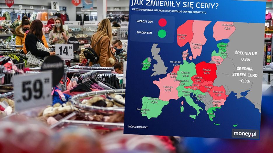 Europejski urząd statystyczny opublikował najnowsze wyliczenia dotyczące inflacji. Okazuje się po raz kolejny, że ceny dóbr i usług konsumpcyjnych w Polsce rosną najszybciej w UE. Co więcej, w październiku różnica względem innych krajów jeszcze powiększyła się.