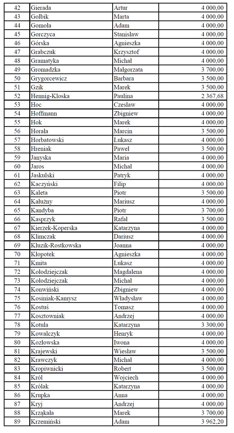 4 tys. zł inkasują natomiast minister infrastruktury Dariusz Klimczak, szef MON i wicepremier Władysław Kosiniak-Kamysz, minister zdrowia Izabela Leszczyna, minister sportu Sławomir Nitras, minister ds. polityki senioralnej Marzena Okła-Drewnowicz czy minister nauki Dariusz Wieczorek. Na liście jest też kilku wiceministrów, między innymi wiceminister rolnictwa Michał Kołodziejczak czy świeżo upieczony wiceminister rozwoju i technologii Michał Jaros (również pobierają po 4 tys. zł).