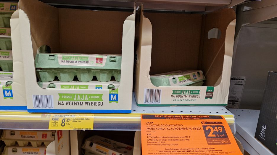 Przypomnijmy, że sprawa zyskała rozgłos, gdy w Biedronce zaoferowano klientom opakowanie 10 sztuk jaj za 2,99 zł. Było to zaskakujące m.in. dla sprzedawców jaj na bazarach, którzy wskazywali, że nie mogą już zejść niżej z obecnych cen, czyli 1-1,3 zł od sztuki, bo byłoby to nieopłacalne.