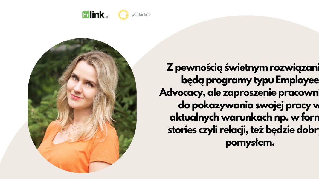– O wiele rozsądniej będzie z jednej strony nieco zmienić proporcje treści, a z drugiej popracować nad zaangażowaniem zespołu w zakresie Social Media. Z pewnością świetnym rozwiązaniem będą programy typu Employee Advocacy, ale zaproszenie pracowników do pokazywania swojej pracy w aktualnych warunkach np. w formie stories czyli relacji, też będzie dobrym pomysłem – mówi Karolina Antczak, ekspertka marki pracodawcy w HRlink.