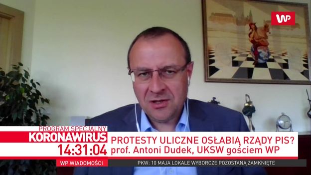 Protesty dopiero zaczynają się rozkręcać. Prawdziwa lawina nastąpi jesienią - uważa prof. Antoni Dudek. - Ludzie dzisiaj jadą na oszczędnościach, jeszcze mają nadzieję. Ale mam przeczucia, że w wielu przypadkach to się nie uda i jesienią będziemy mieli już olbrzymią grupę nie tylko przedsiębiorców, którzy stanęli na skraju bankructwa albo zbankrutowali, ale jeszcze większą liczbę ich dotychczasowych pracowników - mówi prof. Dudek. - To będzie olbrzymie wyzwanie dla rządu, niewątpliwie największe od początku lat 90. - uważa, dodając jednak że ten kryzys jest spowodowany przez epidemię. Prof. Antoni Dudek odniósł się również do protestu przedsiębiorców słowami: - Mnie się wydawało, że rząd PiS nieustannie mówił, że się wsłuchuje w głos ludzi. Nikt z rządu nie miał odwagi wyjść do protestujących. (…) Jeśli rząd będzie wysyłał tylko policję do protestujących, to wiemy, czym to się kończy - powiedział. W jego oczach błędem było wypłacenie emerytom trzynastej emerytury, bo wiadomo już było, że sytuacja związana z koronawirusem jest poważna. - Wtedy można było zwołać natychmiastowe posiedzenie parlamentu i powiedzieć emerytom: przepraszamy, ale przyszłość waszych emerytur zależy od sytuacji przedsiębiorców i te 10 mld zł musimy dać, by ratować firmy - mówił.